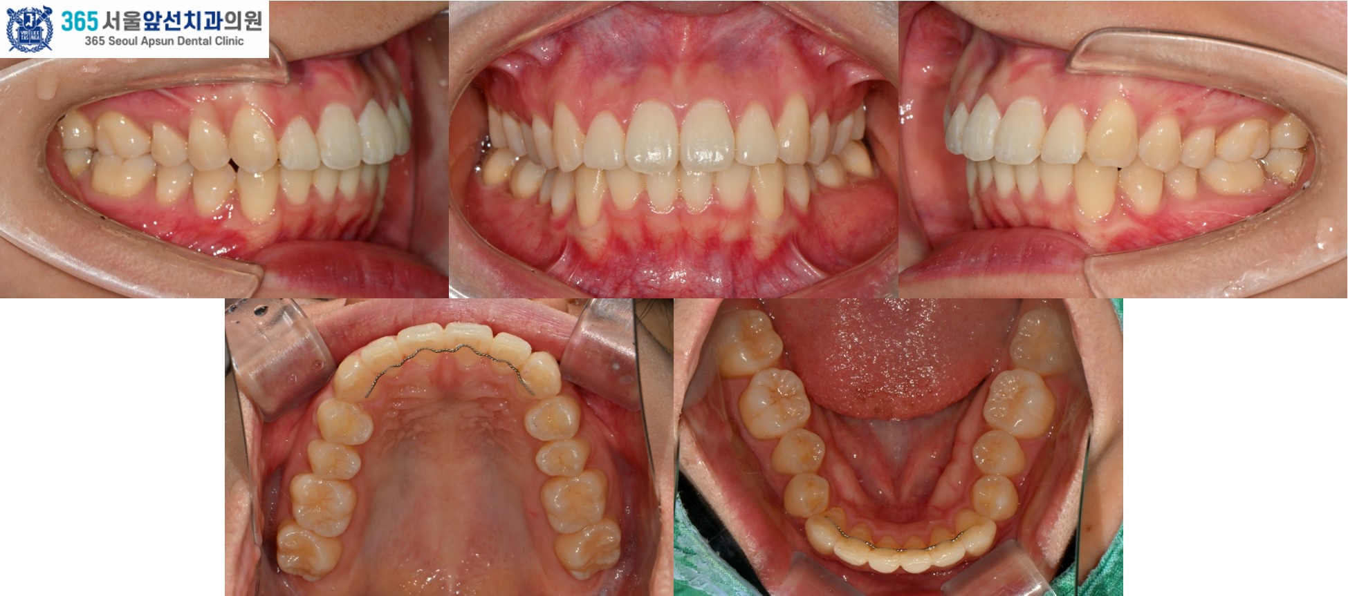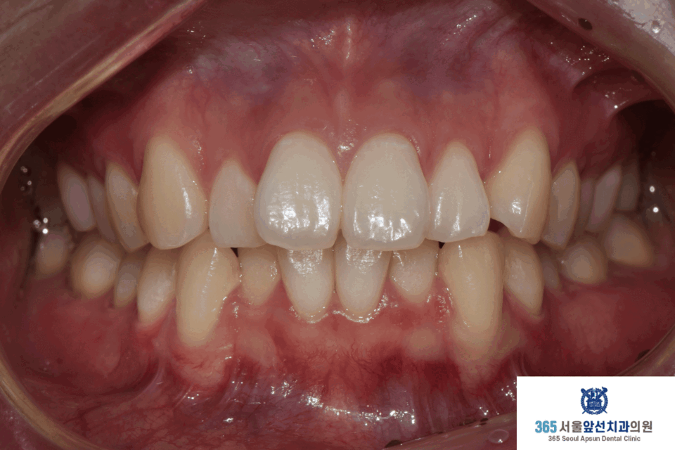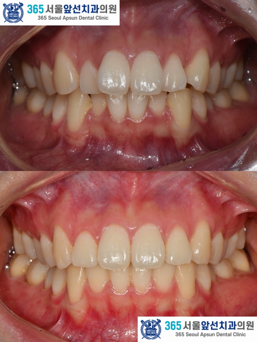 치료 후의 모습입니다. 아랫니 치열은 약 5개월, 윗니 치열은 약 7개월의 치료기간이 소요되었습니다. 앞니의 치열이 가지런하게 배열되어 환자분도 만족하셨습니다. 미소 시 자연스럽고 단정한 인상으로 변화하였습니다. 앞니 부분 교정 증례의 치료기간은 4-9개월 사이로 정도에 따라 상이합니다. 부분 교정 관심 있으신 환자분들께서는 365서울앞선치과로 내원하셔서 교정 진단 받아보시길 바랍니다. 감사합니다!