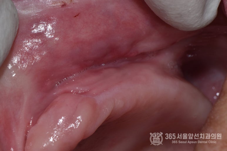 안녕하세요 주안역 인근에 위치한 365서울 앞선치과입니다. 오늘 소개할 환자분의 케이스는 잘 맞지 않는 틀니를 오랜기간 착용하시다보니 의치성 섬유성 증식(epulis fissuratum)이라는 병소가 증식되어 그로 인해 틀니가 통증을 유발하여 틀니를 제대로 쓸 수 없을 지경에 이른 환자분이셨습니다.