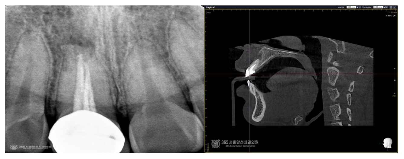촬영일시 : 2024.10.15 또한 앞니 보철물도 새로 잘 만들어드렸습니다. 고름주머니도 소실되었고 통증도 사라졌습니다ㅎㅎ 오늘 소개해 드린 주안동치과추천 365서울앞선치과의원 치료 증례는 오래전 신경치료된 치아에 염증이 재발하여 재신경치료를 하여 치아를 살린 치료입니다. 재신경치료는 난이도가 높은 치료 술식에 해당하므로 전문가와 충분한 상의를 거친 후 치료를 받으시는 것이 중요하겠습니다 ㅎㅎ 앞으로도 좋은 치료 증례로 찾아뵙겠습니다. 감사합니다 ㅎㅎ [치료기간: 2024년 9월13일 ~2024년 10월15일] ※365서울앞선치과의원의 모든 포스팅은 각 진료과 의료진이 직접 작성합니다. 365서울앞선치과의원 블로그의 임상 케이스 게시물은 환자분께 의학적으로 정확하고 상세한 정보를 드리기 위해 각 진료과 의료진이 직접 작성하며, 모든 증례 사진은 본원 의료진이 직접 시술한 증례를 촬영한 것으로, 의료법 제23조, 제56조에 의거하며 환자분의 동의를 얻어 포스팅에 사용하였습니다. 또한 해당 케이스는 본 환자분의 치료 결과이며, 환자 상태에 따라 치료의 결과는 달라질 수 있습니다. |